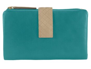Billetera de mujer fabricada en piel. Consta de 10 departamentos para tarjetas, 2 monedero con cremallera y 1 departamentos para billetes.