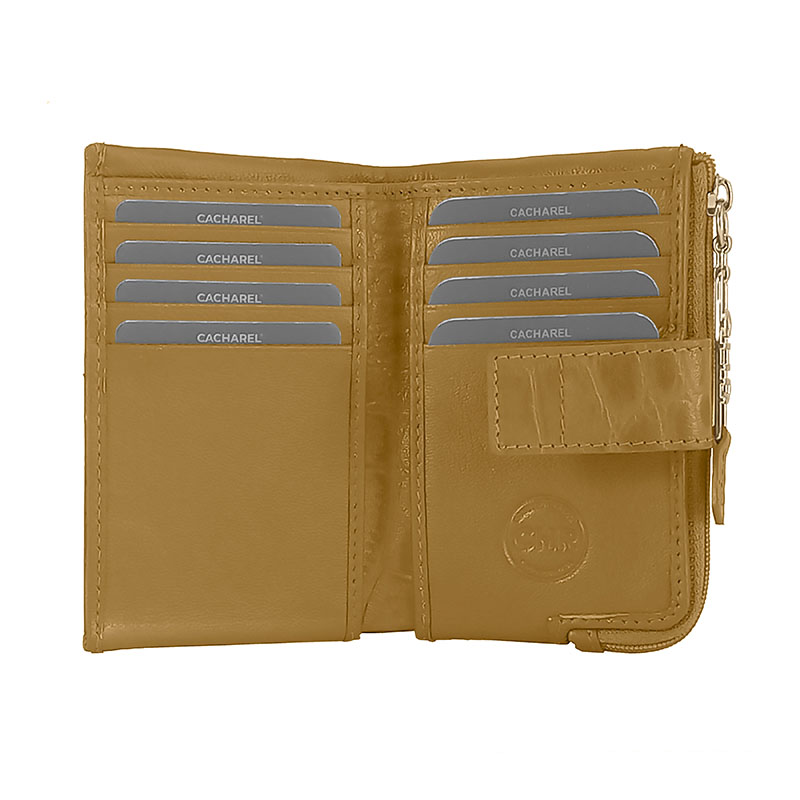 Billetera de mujer colección ZAFIRO. Consta de 10 departamentos para tarjetas, 1 monedero con cremallera y 1 departamentos para billetes.