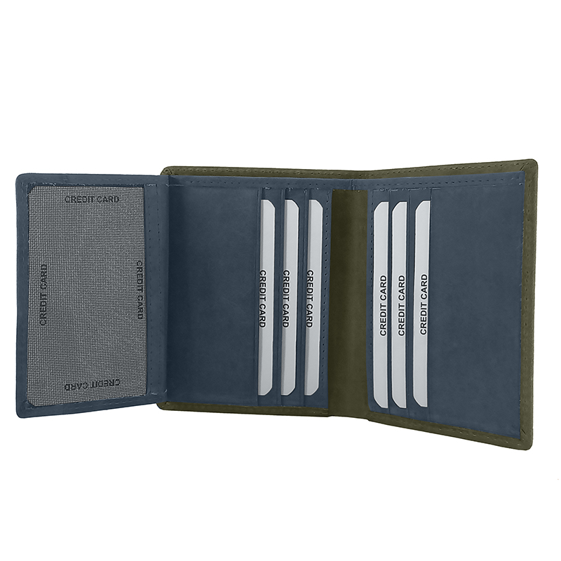 Billetero juvenil en piel engrasada. 9 departamentos para tarjetas y DNI