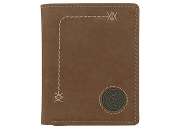 Billetero americano fabricado en piel engrasada. Consta de 4 departamentos para tarjetas y DNI. Monedero interior con broche.