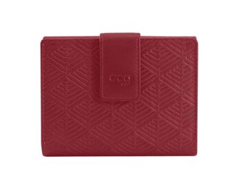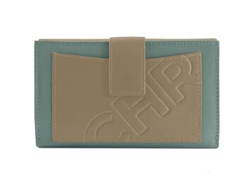 Cartera fabricada en piel de primera calidad. Consta de 2 espacios para billetes, 10 compartimentos para tarjetas y documentación. Monedero con cierre de broche.