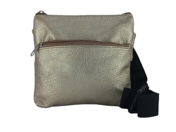 Riñonera bandolera en polipiel. Cierre con cremallera. Bolsillo trasero con cremallera. Bolsillo frontal con solapa y cierre de imán. Portagafas en la correa. Correa extensible de 85 a 130cm.